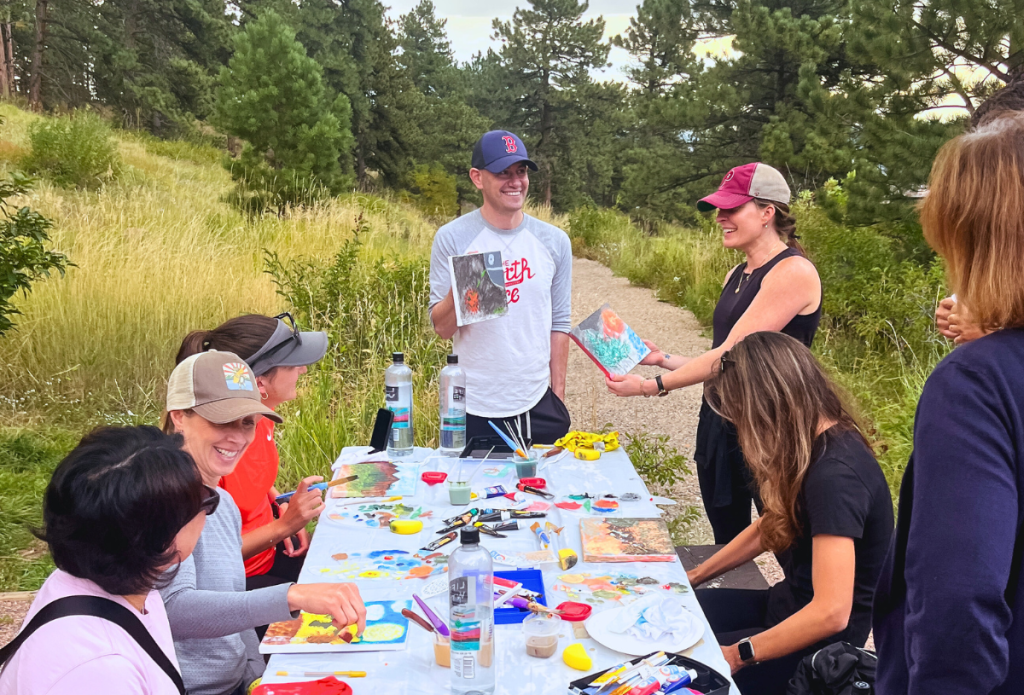 What a nice low key way to introduce ourselves to the mountain region after moving to Denver from North Carolina. Sarah did a nice job of helping us detach from our day-to-day, connect with nature, and “climb our first mountain” which involved a casual walk up trails in Mount Falcon Park. Perfect for those of us acclimating to mile plus altitude. The setting for our painting lesson was delightful as was the instruction. We each came away with a unique painted canvas. Thumbs up! Thank you Sarah.